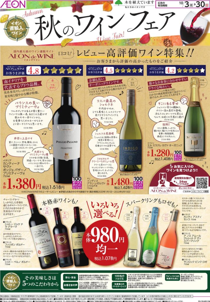秋のワインフェア 〜口コミレビュー高評価ワイン特集!!〜