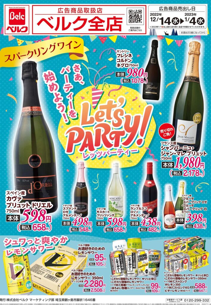 レッツ パーティー! 〜さあ、パーティーを始めよう!〜 /年末年始はおいしいお酒で 酔いましょ  笑いましょ 〜笑う門には福来る ベルクのお酒で福来る〜