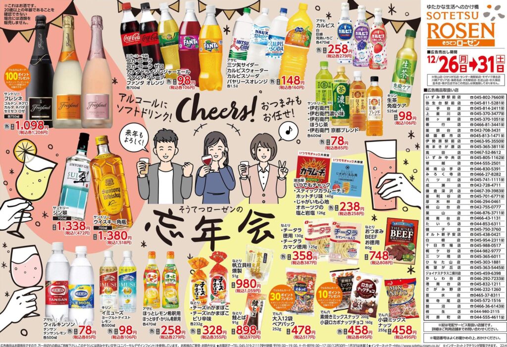 ゆく年、くる年 2023年もお酒は そうてつローゼンで/そうてつローゼンの忘年会 〜アルコールに、ソフトドリンク!おつまみもお任せ!〜