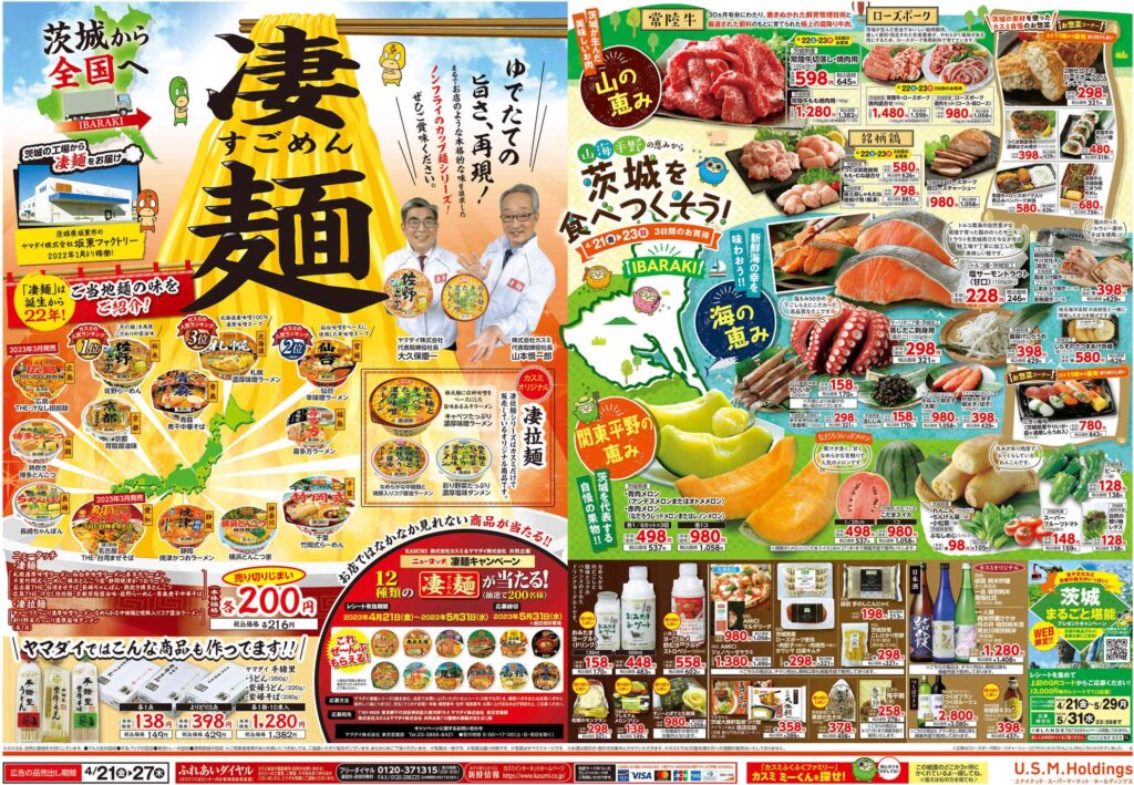 凄麺 〜茨城から全国へ ゆでたての旨さ、再現!〜 / 茨城を食べ尽くそう! 〜山・海・平野の恵みから〜 カスミ2023年4/21号 タイトルデザイン