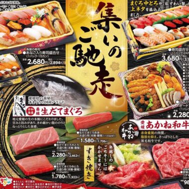 | 商品 | 寿司、まぐろ、黒毛和牛、牡蠣、ずわいがに、海老天、オードブル、おせち、カットフルーツ、チーズケーキ、ロールケーキ、団子、タルト、カステラ、シュークリーム |