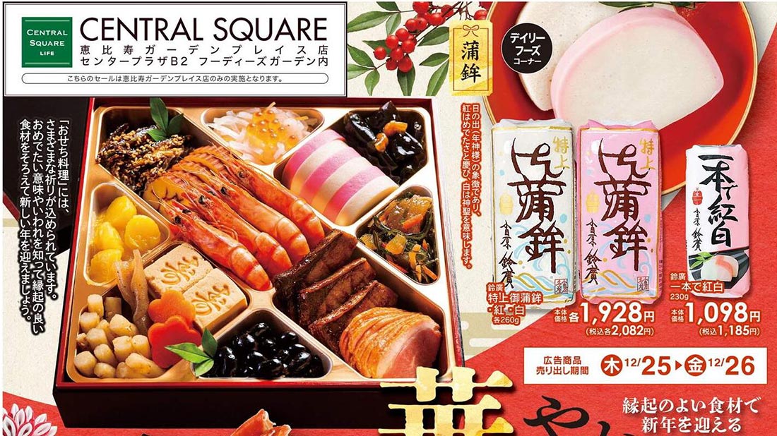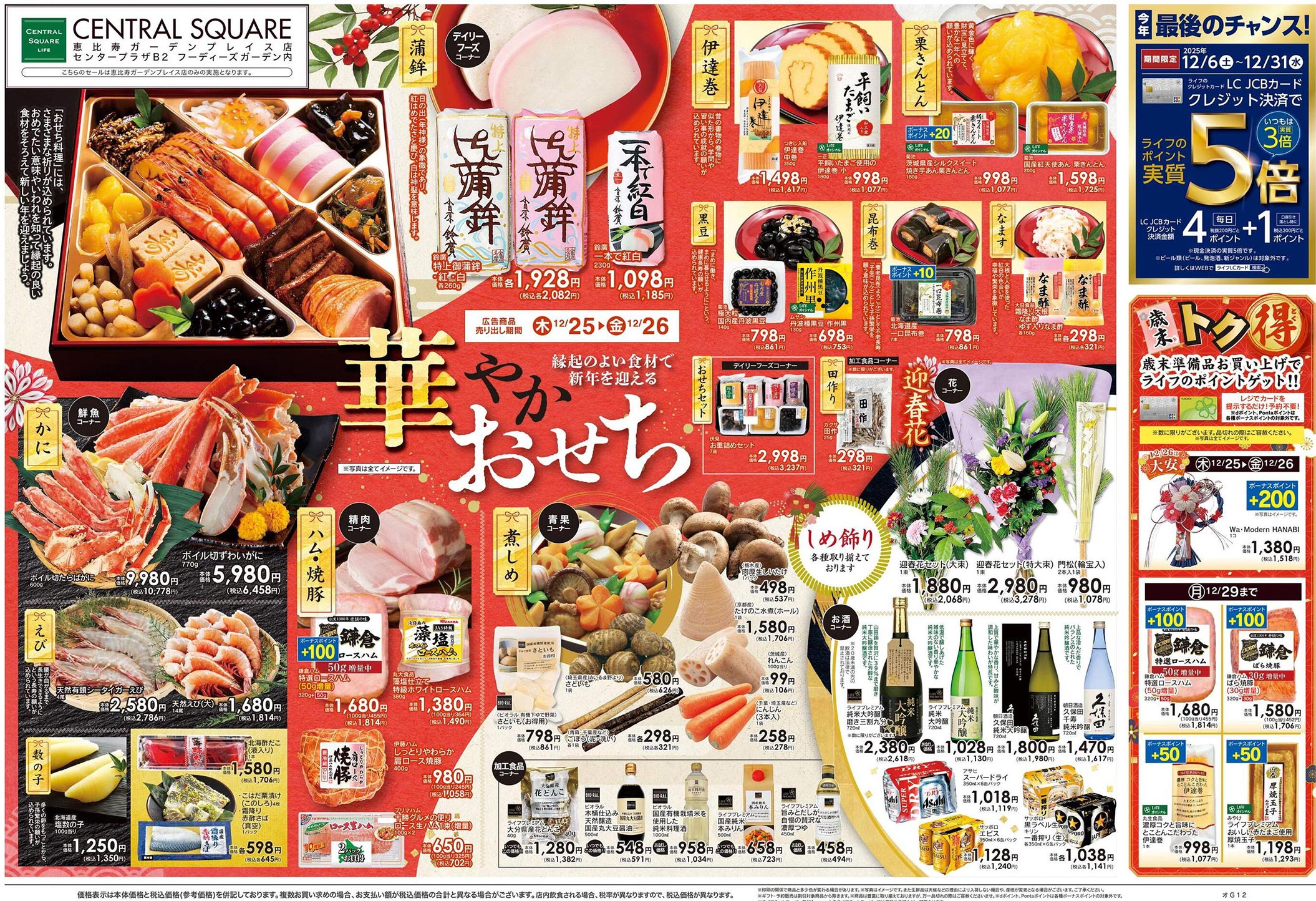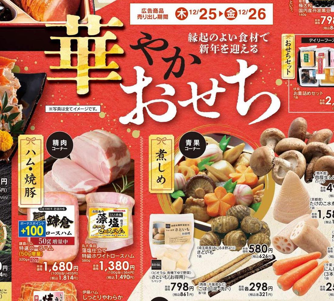 CSライフ2025年12/25号(食品スーパー)のチラシでは、歳末をテーマにした構成が採用されています。シンプルな印象と明朝系のデザイン表現が特徴的です。