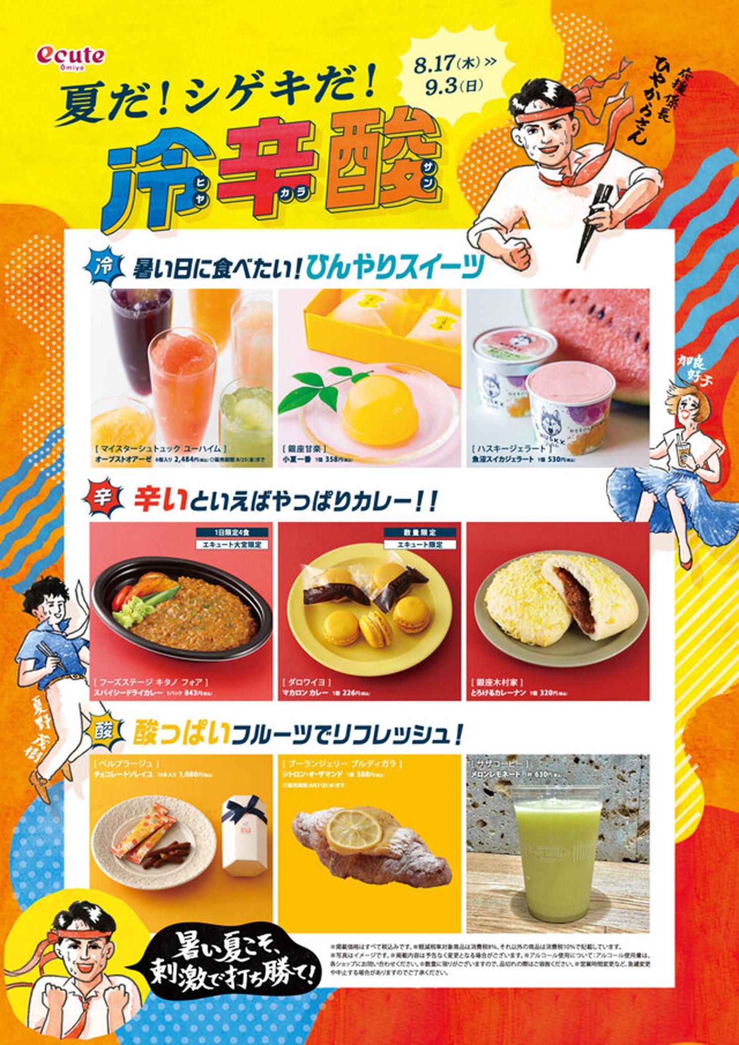 | キャッチコピー | ●暑い夏に食べたい!ひんやりスイーツ ●辛いといえばやっぱりカレー ●酸っぱいフルーツでリフレッシュ! |