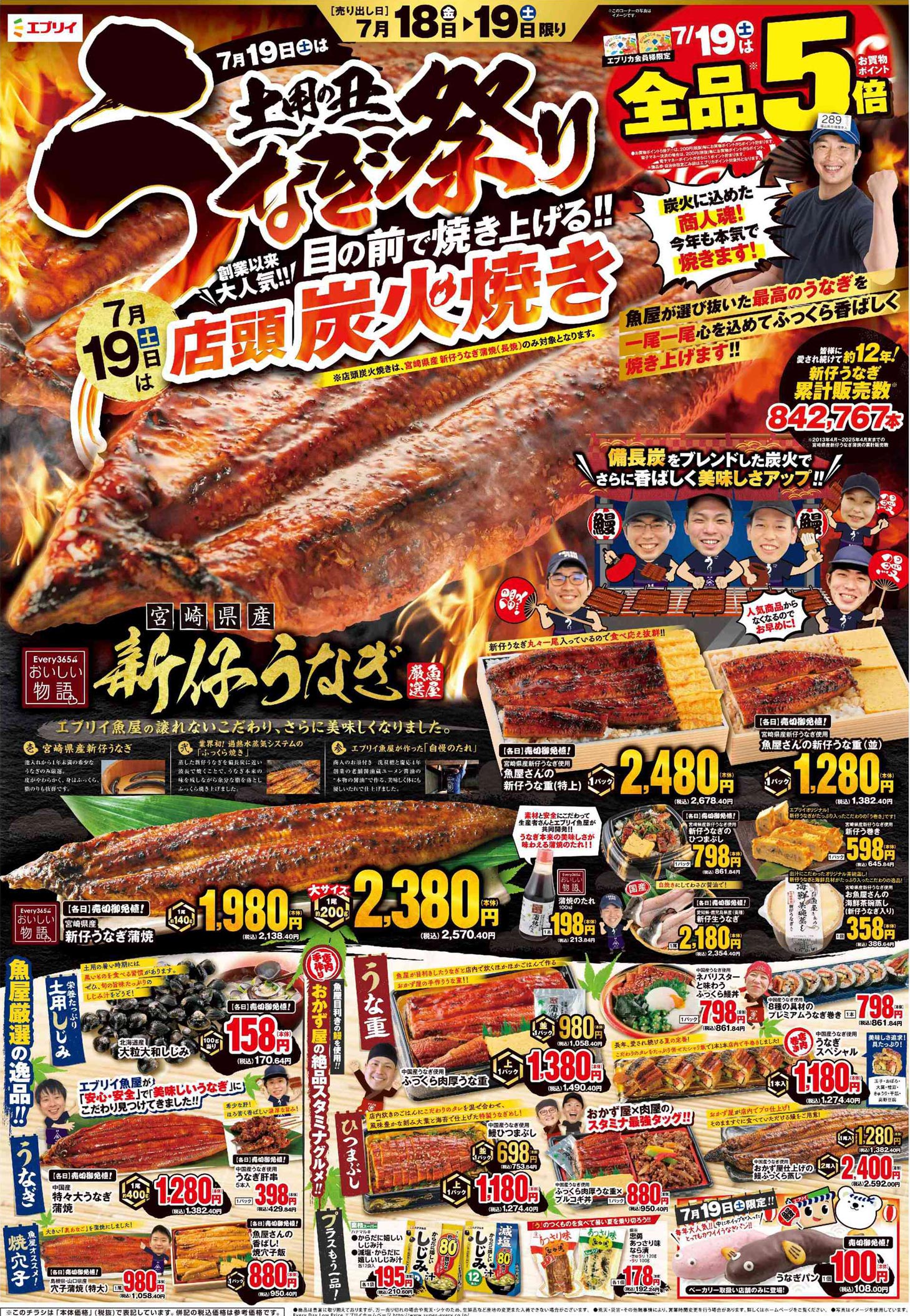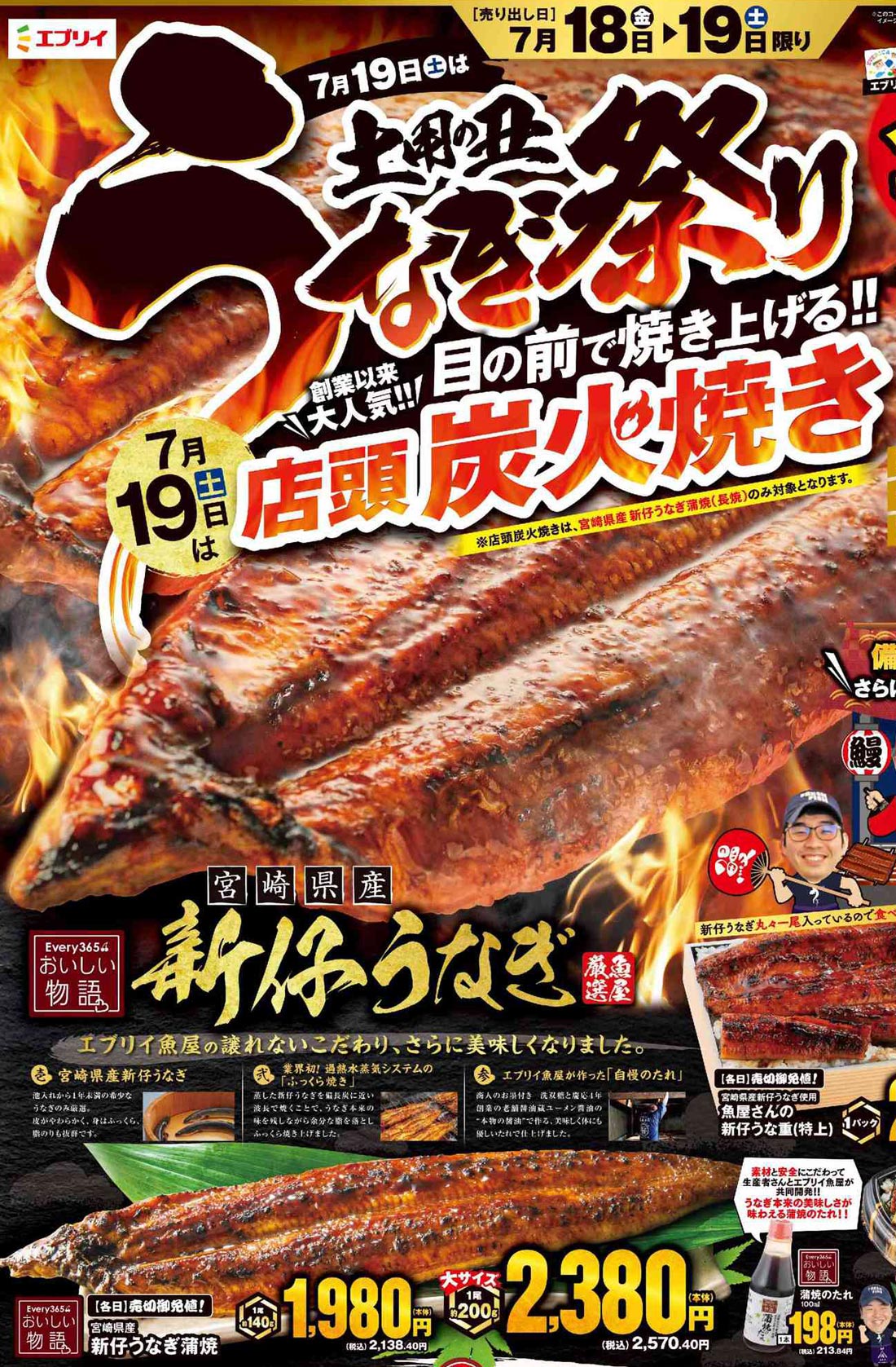 エブリイ2025年7/18号(食品スーパー)のチラシでは、うなぎを軸に商品提案がまとめられています。食品スーパーならではの視点で構成された紙面デザインが印象的です。