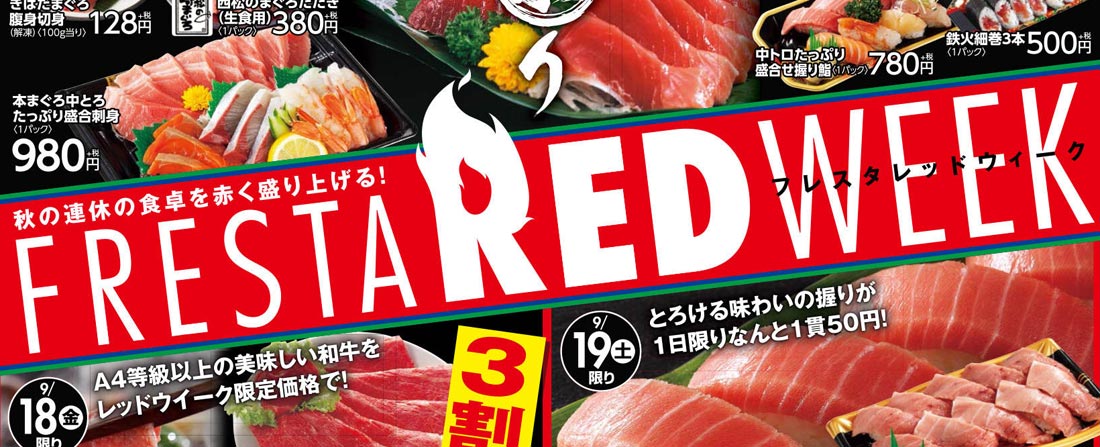 タイトル FRESTA RED WEEK フレスタレッドウィーク 〜秋の連休の食卓を赤く盛り上げる!