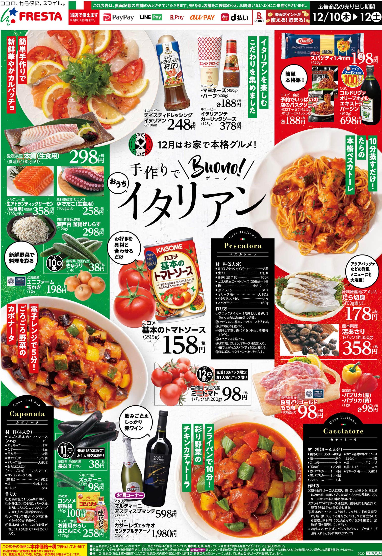 フレスタ2020年12/10号(食品スーパー)のチラシでは、K 海外を軸に商品提案がまとめられています。食品スーパーならではの視点で構成された紙面デザインが印象的です。