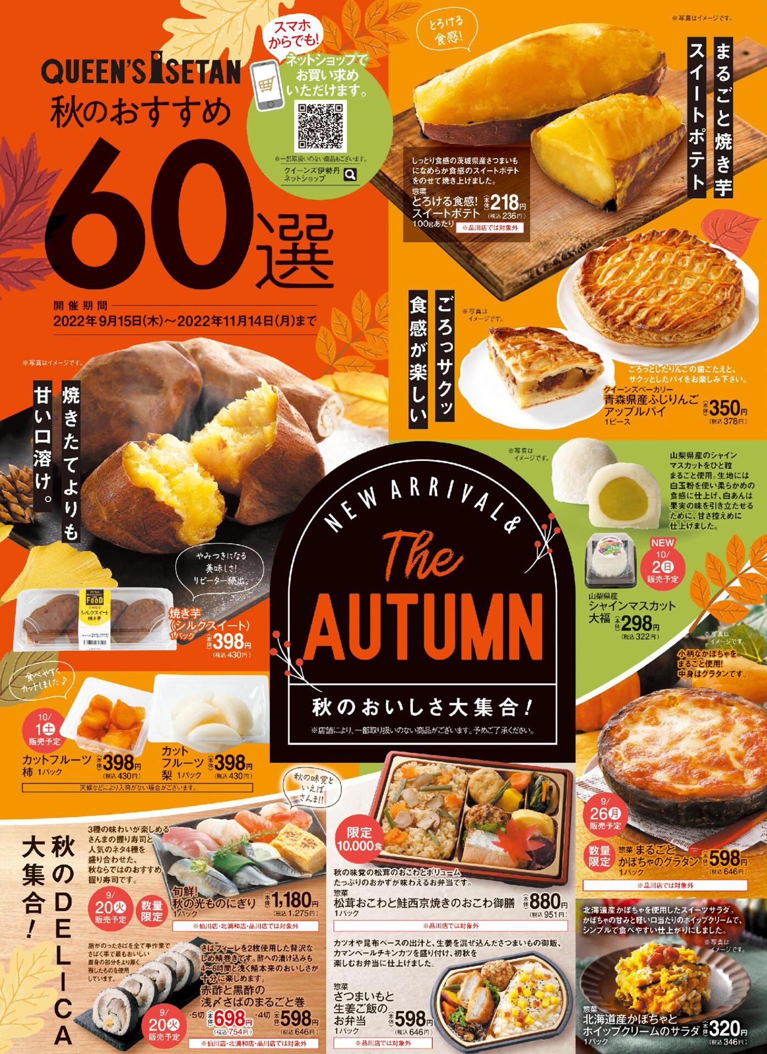 | タイトル | クイーンズ伊勢丹 秋のおすすめ60選 NEW ARRIVAL & The AUTUMN 〜秋のおいしさ大集合!〜 |