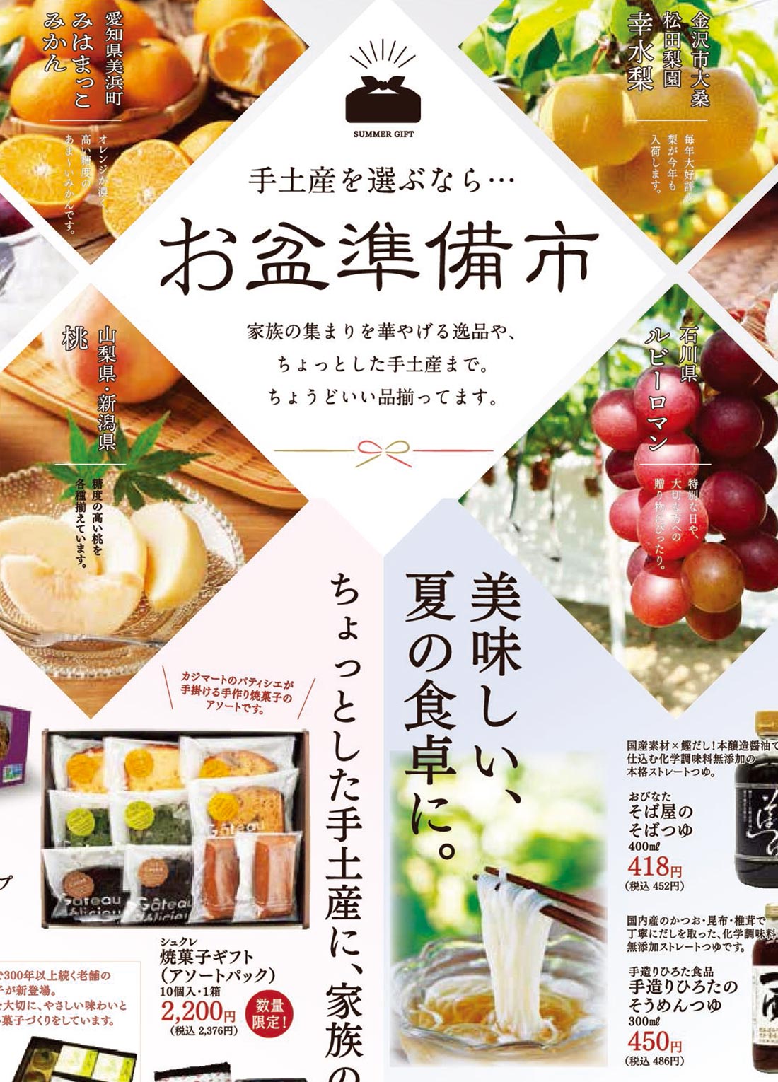 | タイトル | お盆準備市 〜手土産を選ぶなら…〜 夏の逸品 〜人気の一押し商品が目白押し〜 |