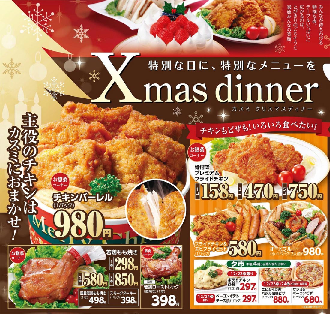 | キャッチコピー | ●色とりどりのごちそうに心も会話も弾む ●主役のチキンはカスミにおまかせ! |