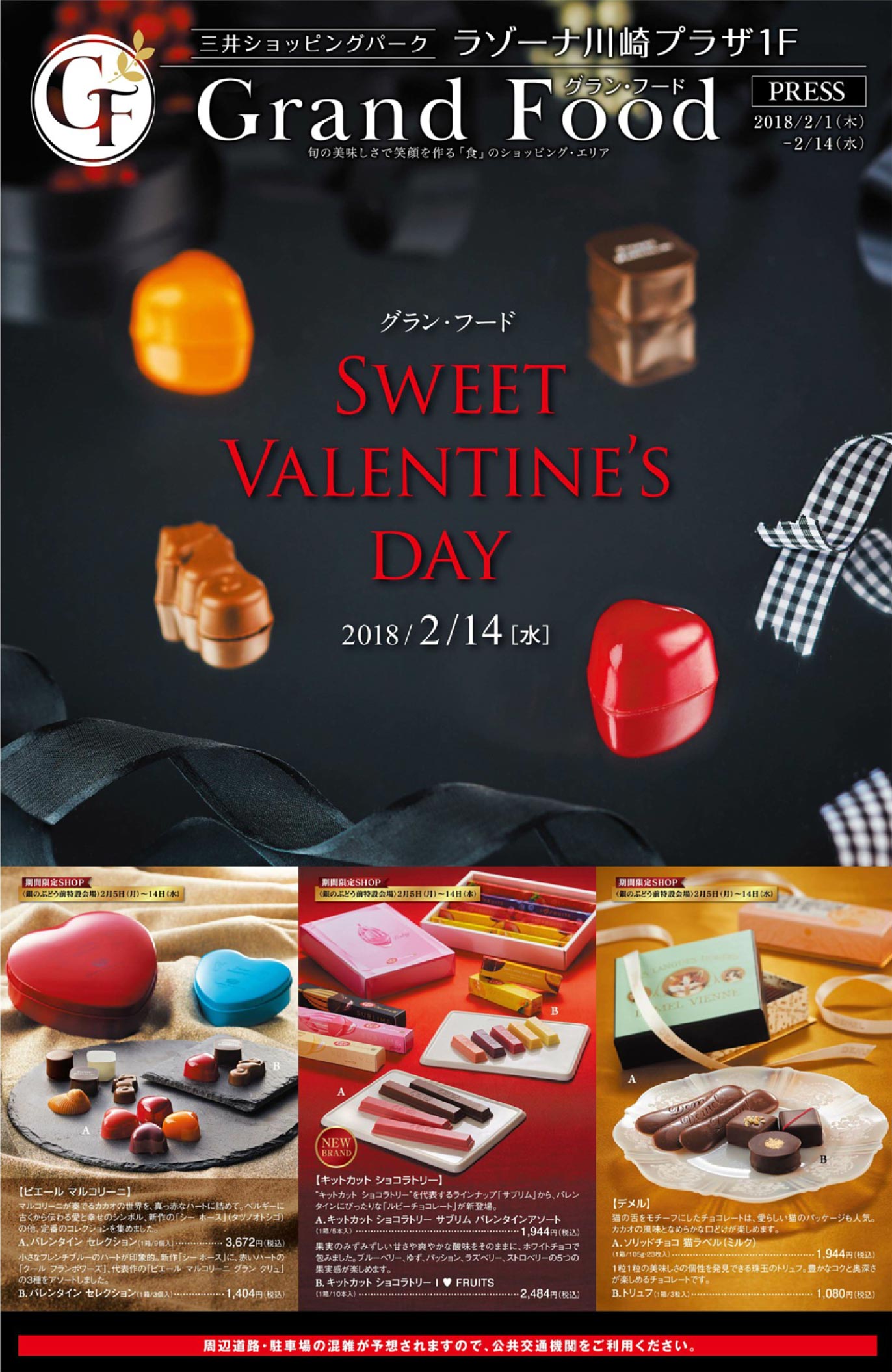 ラゾーナ川崎プラザ2018年2/8号(百貨店)のチラシです。バレンタインをテーマに、シンプル・高級感なビジュアルと明朝系のデザインが特徴です。