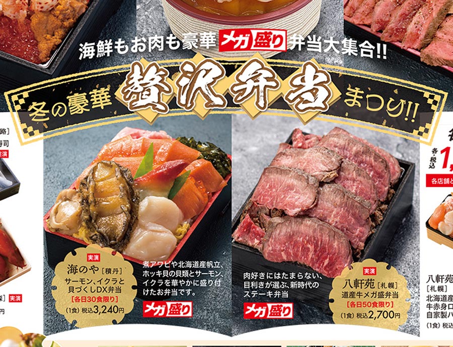 | タイトル | 北海道物産展 年末特別企画 〜北のグルメハンター 本田大助が知っている、北海道物産展の世界。〜 冬の豪華贅沢弁当まつり!! |