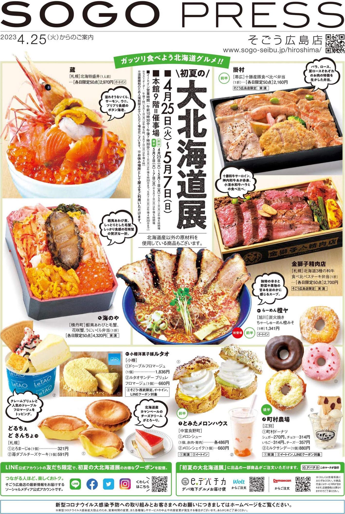 百貨店であるそごう広島店2023年4/25号のチラシです。A 北海道の企画意図が紙面構成に反映されています。