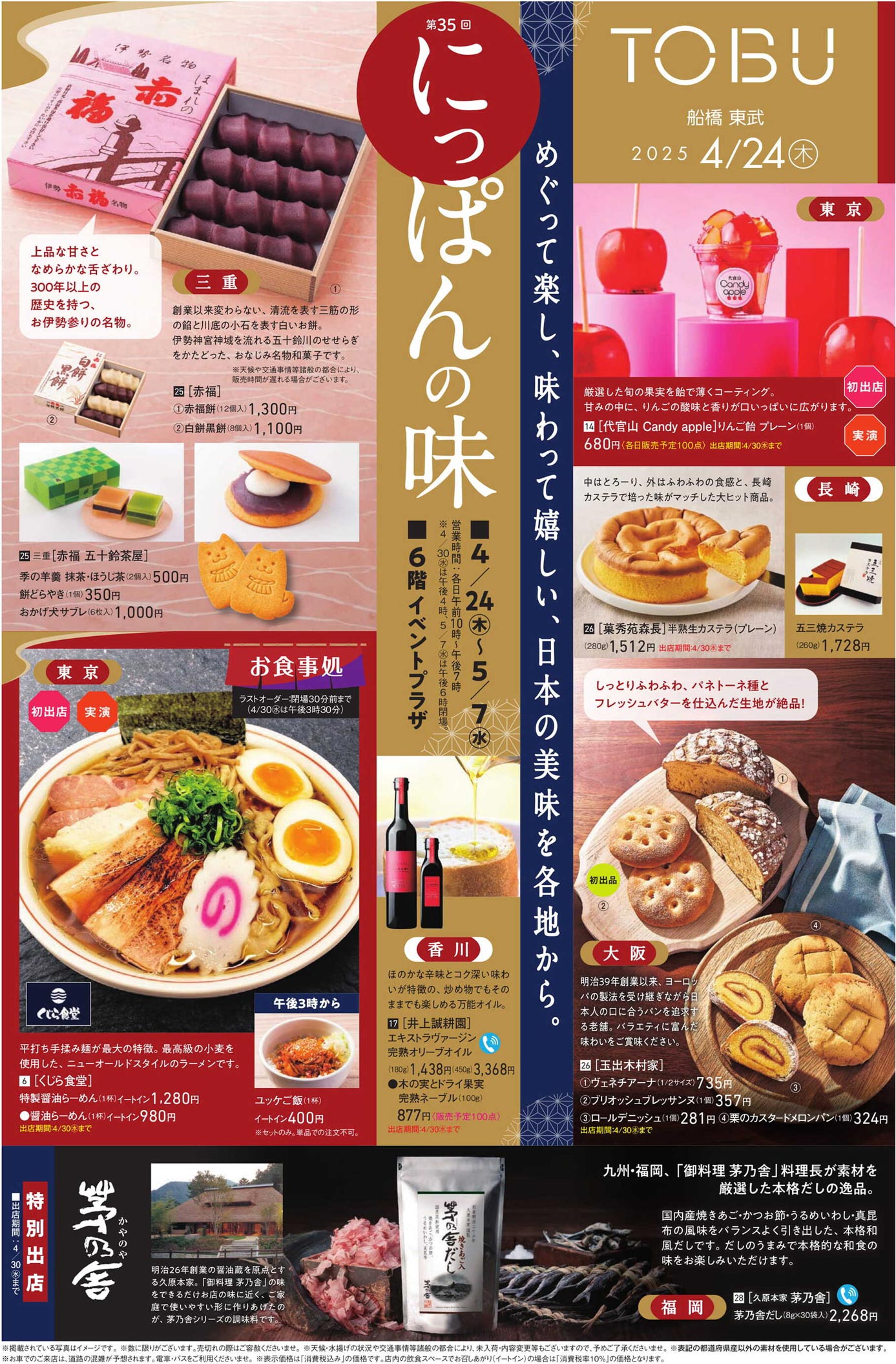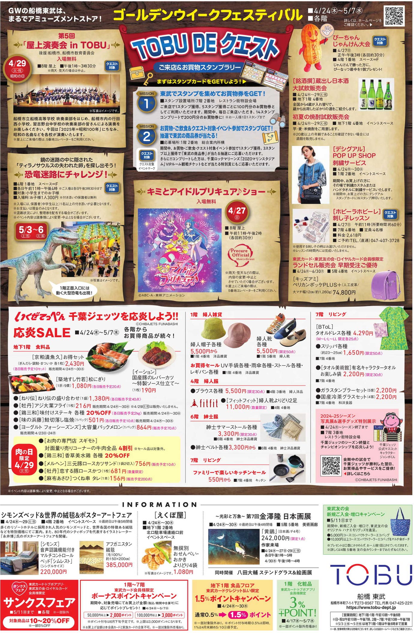 東武船橋2025年4/24号(百貨店)のチラシ内容を紹介します。を中心に、シンプルな要素と明朝系の表現で構成されたデザインです。