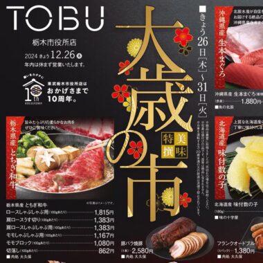 東武池袋2024年12/12号(百貨店)のチラシ内容を紹介します。クリスマスを中心に、シンプル・高級感な要素と明朝系の表現で構成されたデザインです。