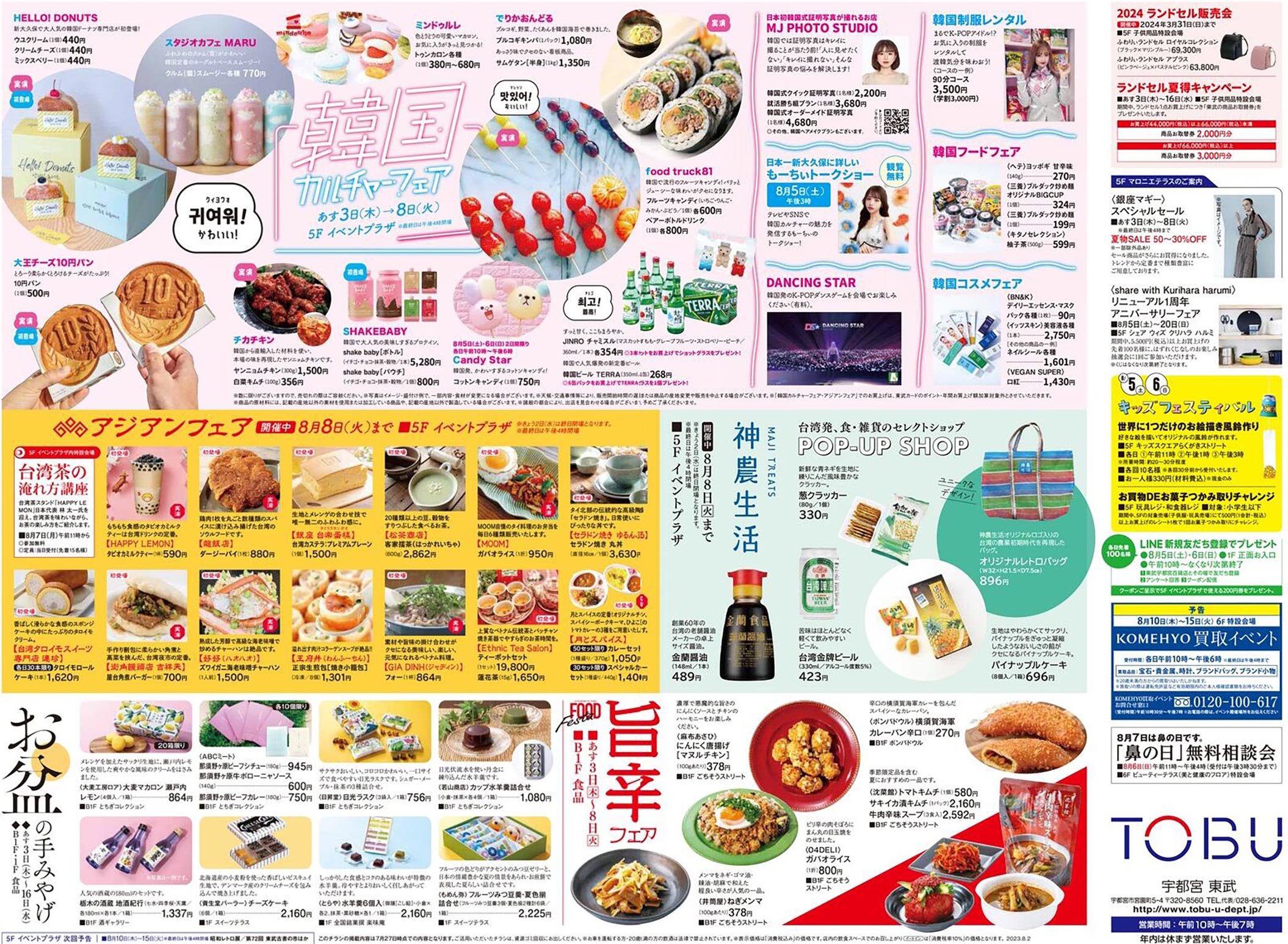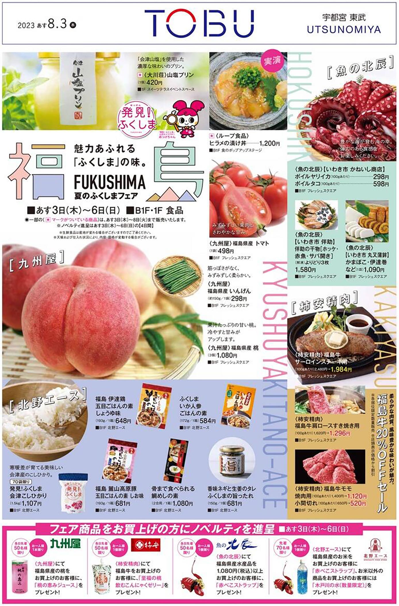 東武宇都宮2023年8/3号(百貨店)のチラシでは、福島を軸に商品提案がまとめられています。百貨店ならではの視点で構成された紙面デザインが印象的です。