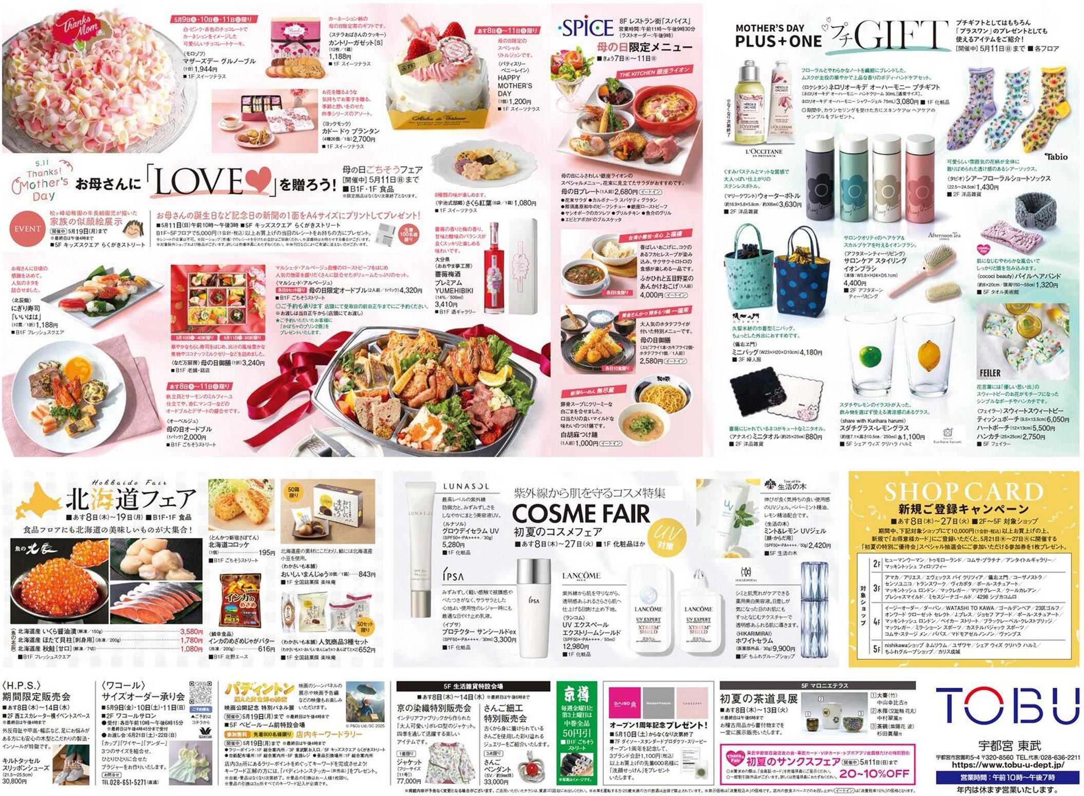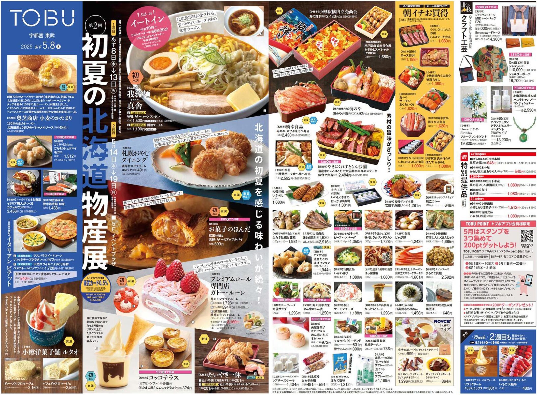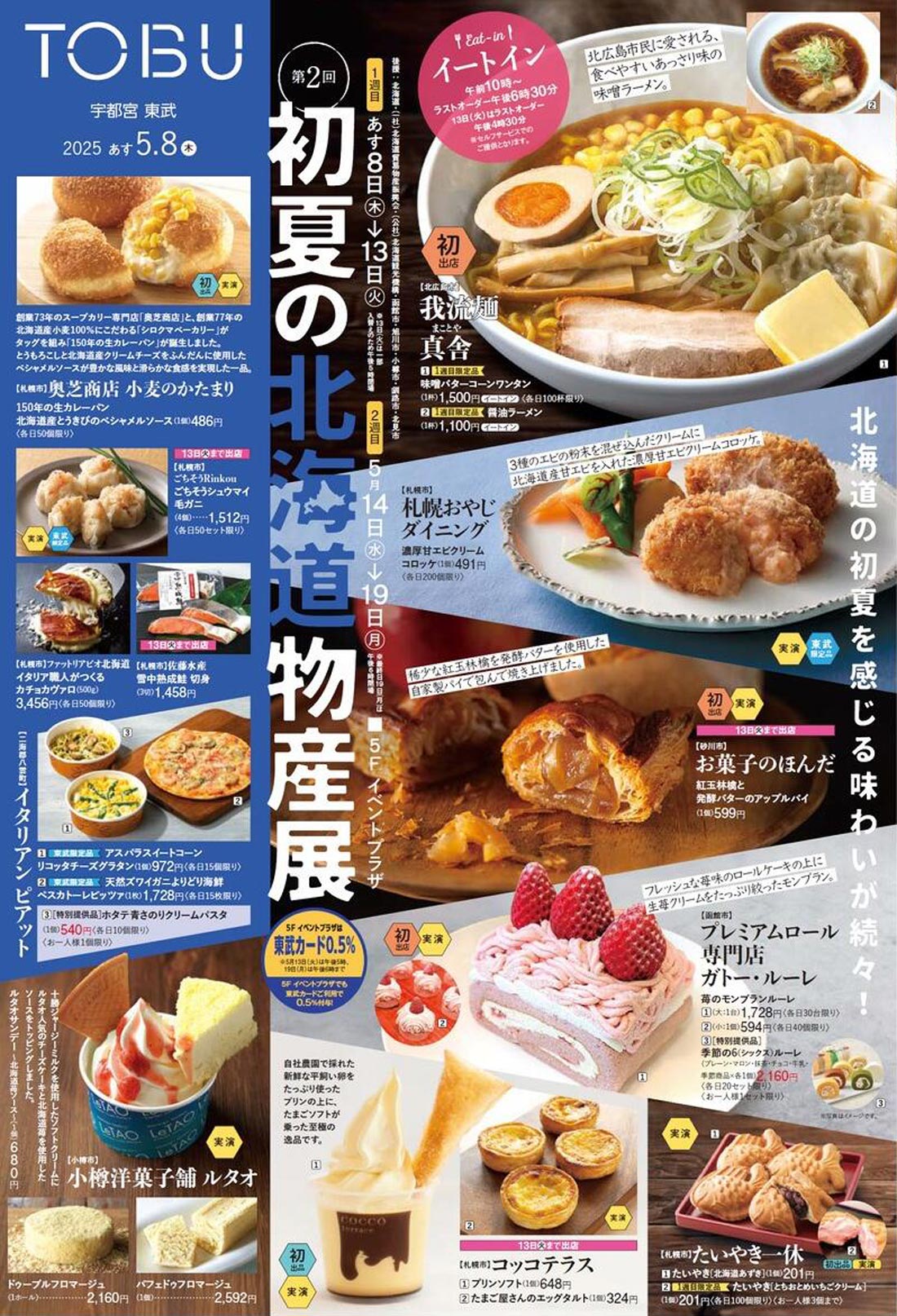 百貨店である東武宇都宮2025年5/8号のチラシです。A 北海道の企画意図が紙面構成に反映されています。