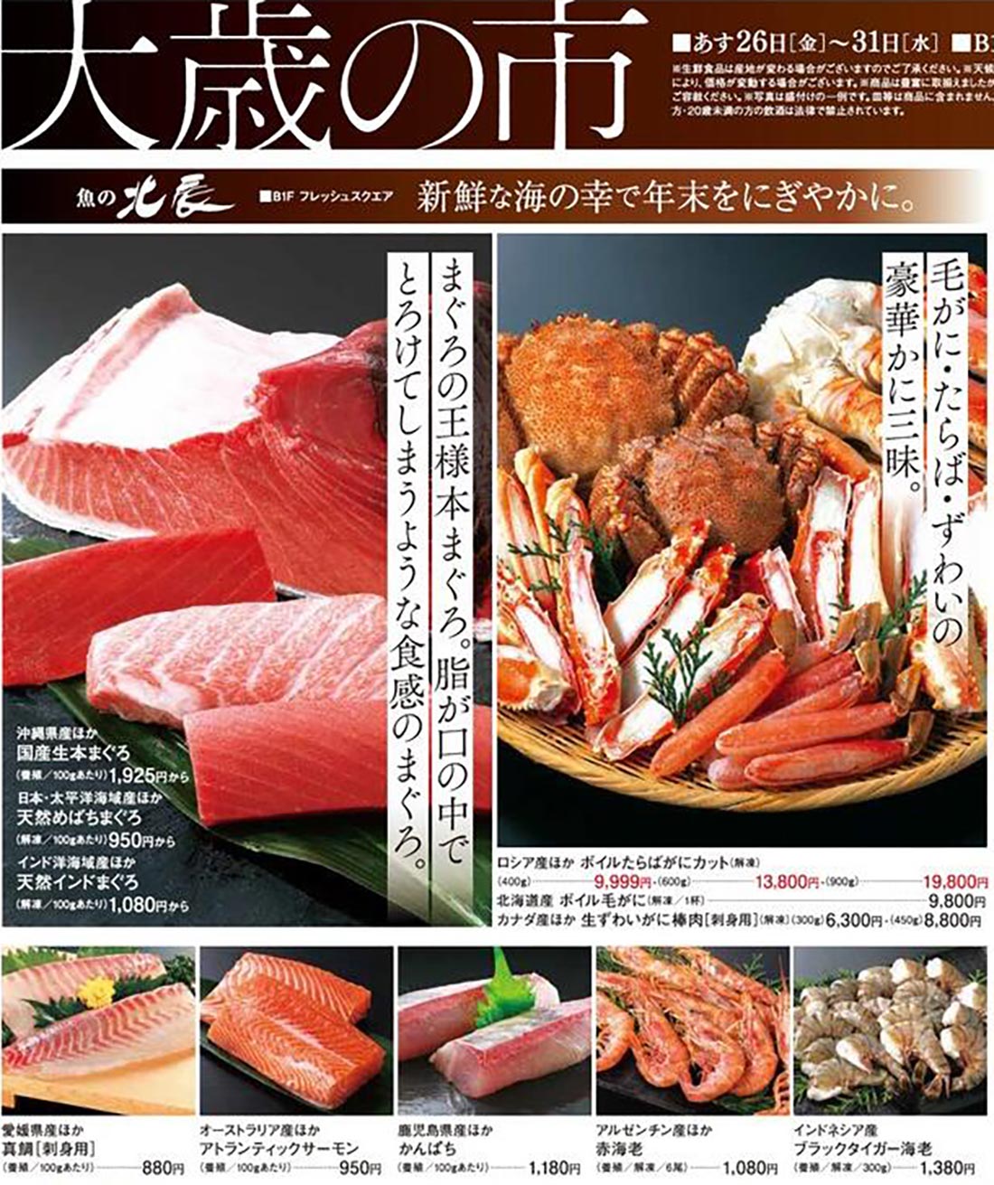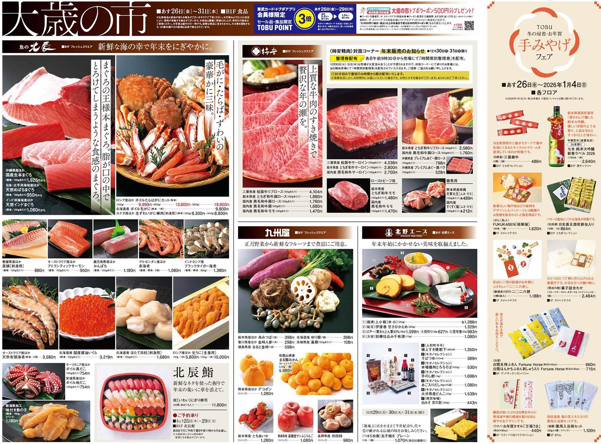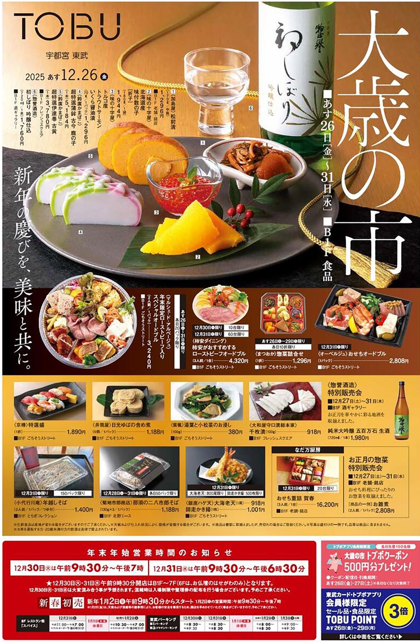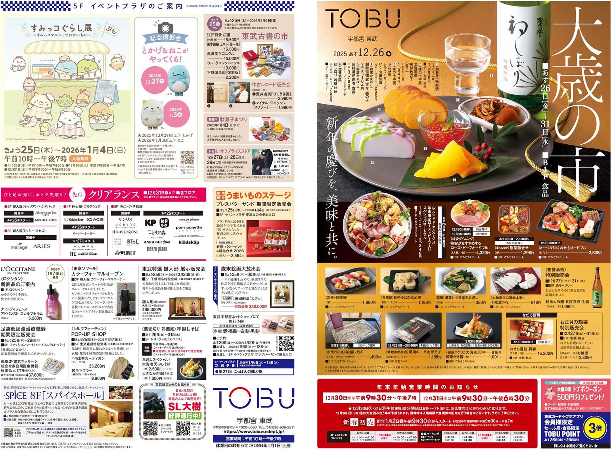 東武宇都宮2025年12/26号(百貨店)のチラシでは、歳末をテーマにした構成が採用されています。シンプルな印象と明朝系・写真使用のデザイン表現が特徴的です。