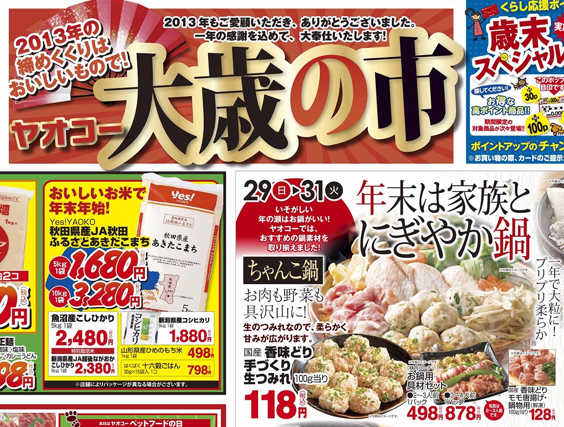 | タイトル | ヤオコー大歳の市 〜2013年の締めくくりは美味しいもので!〜 幸いっぱいの新年を迎える |