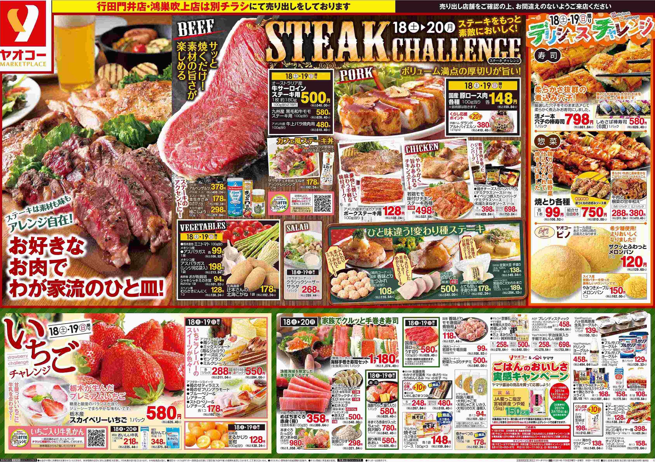 ヤオコー2017年2/18号(食品スーパー)のチラシ内容を紹介します。BBQ・肉を中心に、スタイリッシュ・ナチュラルな要素とデザインフォント・写真使用の表現で構成されたデザインです。